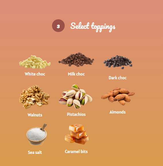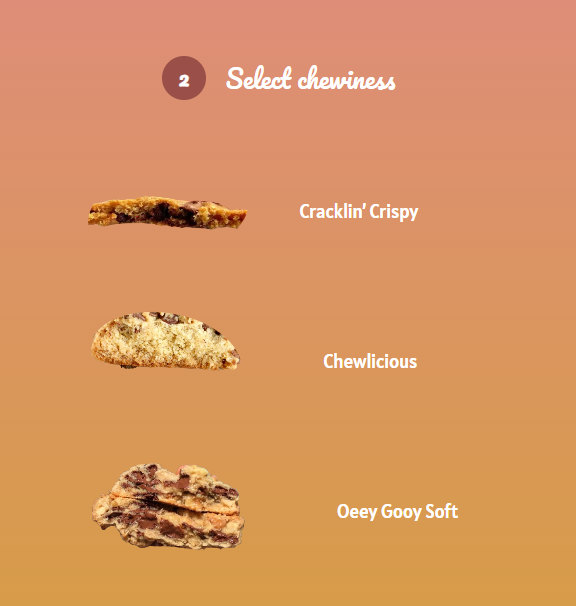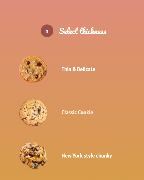 Created fun, warm bakery experience with warm peach/orange palette evoking fresh cookies. Stepper flow guides users intuitively; hover states and animations make selections feel responsive and joyful.